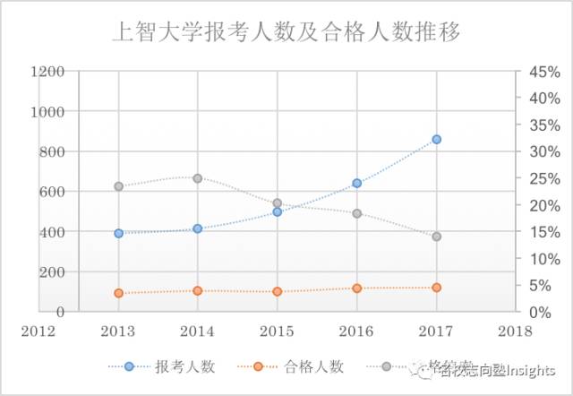 從數據上來看上智大學擴招了,正規留學生的人數增加了,那報考上智大學的把握是不是就更大了呢?這可不盡然。從上智大學官方發佈的數據來看,外國人入學考試的報考人數從2013年的388人激增到2017年的860人。錄取率卻從2013年的23%驟降到了2017年的14%。